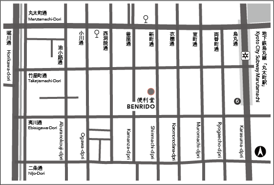 京都市営地下鉄烏丸線・丸太町駅下車、6番出口から徒歩7分